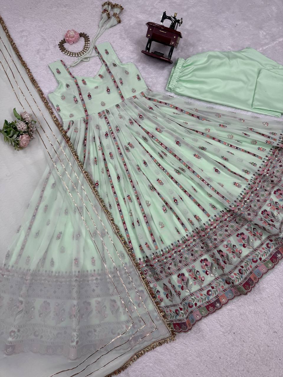 The top is crafted in premium faux georgette, lined with soft micro cotton and embellished with intricate thread and sequin embroidery. Itβs paired with comfortable micro cotton pants featuring a stretchable elastic waistband, stitched fully up to size 44. Completing the ensemble is a graceful faux georgette dupatta with a delicate 4-side lace border, making it ideal for festive, formal, or casual events.
